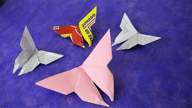 Oi pessoal! Com apenas papel (dobradura, sulfite, de revista, etc) você faz essas lindas e delicadas borboletas de origami. Podem ser usadas de diversas maneiras, é só dar "asas" à imaginação : ).